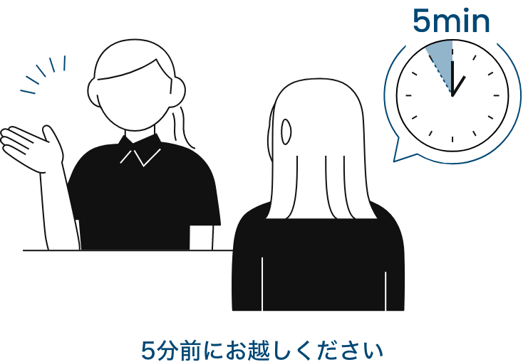 余裕を持って予定の5分前を目安に店舗にお越しください。セラピストが笑顔でお出迎えし、施術ベッドまでご案内いたします。